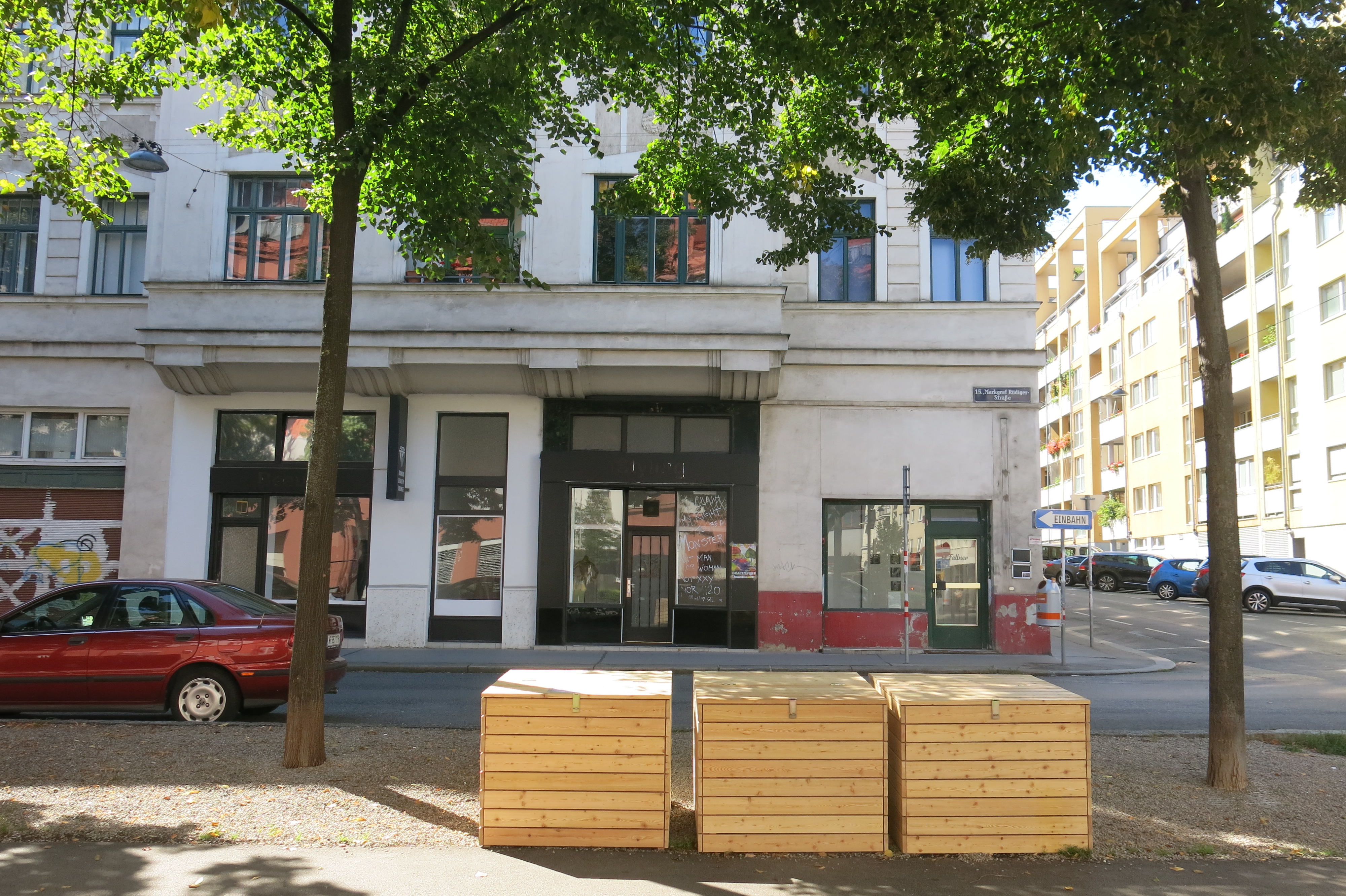 In einer Allee in Fünfhaus, Wien wurden drei Holzcontainer aufgestellt. Menschen in der Nachbarschaft wurden eingeladen ihre Bioabfälle gemeinschaftlich und vor Ort in fruchtbaren Biodünger zu verwandeln. Derzeit sind 30 Haushalte beteiligt, die ihre Abfälle regelmäßig zu den Containern bringen. Gemeinsam schaut die Gruppe darauf, dass es eine gute Mischung aus harten und weichen, feuchten und trockenen Bestandteilen gibt. Bei Aktionstagen wird gemeinsam umgeschaufelt und nach einigen Monaten konnte zum ersten Mal geerntet werden.