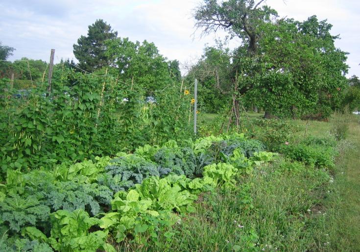 Im Obstgarten gibt es viel Fläche, um nach den Ideen eines Permakulturgartens zu gestalten. Es kann Gemüse angebaut werden, Beerensträucher gepflanzt oder ein Spielplatz eingerichtet werden. Es kann Raum zum Entspannen und Raum zum Feiern geben, Raum einander zu treffen.