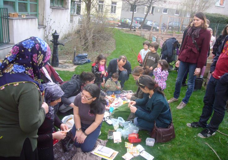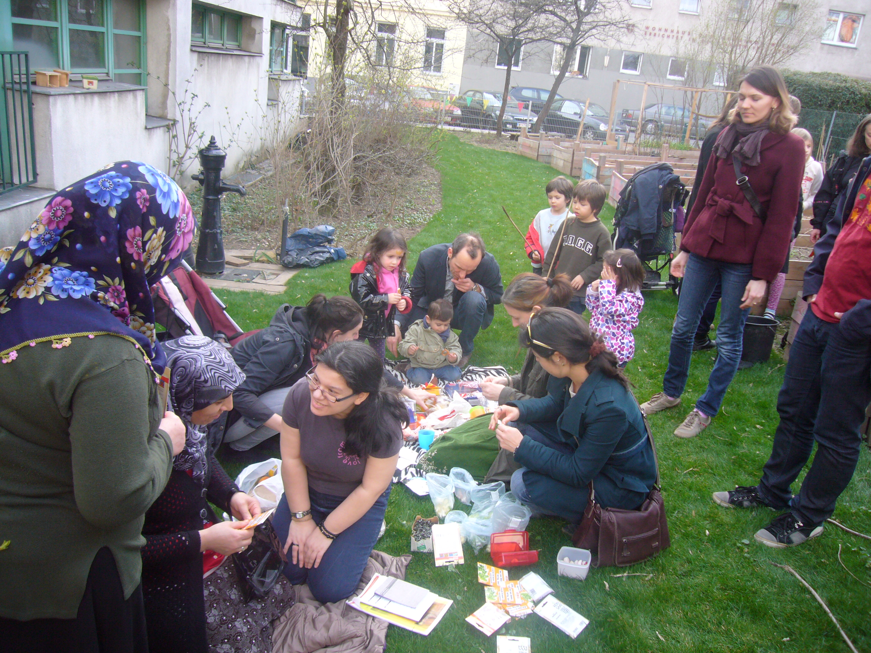 Wir sind eine multikulturelle Gemeinschaftsgartengruppe, die die Stadt verschönern und die Nachbarschaft stärken will. Der Garten befindet sich in engbebautem Gebiet, mitten im 15. Bezirk, nahe der Sechshauser Straße, eingekreist von Gemeindebauten. Die Ausschreibung erfolgte nur im Grätzl. Gegärtnert wird auf neun selbst gebauten Hochbeeten, wobei sich je zwei Gruppen oder Einzelpersonen ein Beet teilen. Einmal pro Woche ist der Garten Mädchengarten für die Mädchen- und Kindergruppe des Vereins Zeitraum, die ebenfalls jeweils ein Beet betreuen.